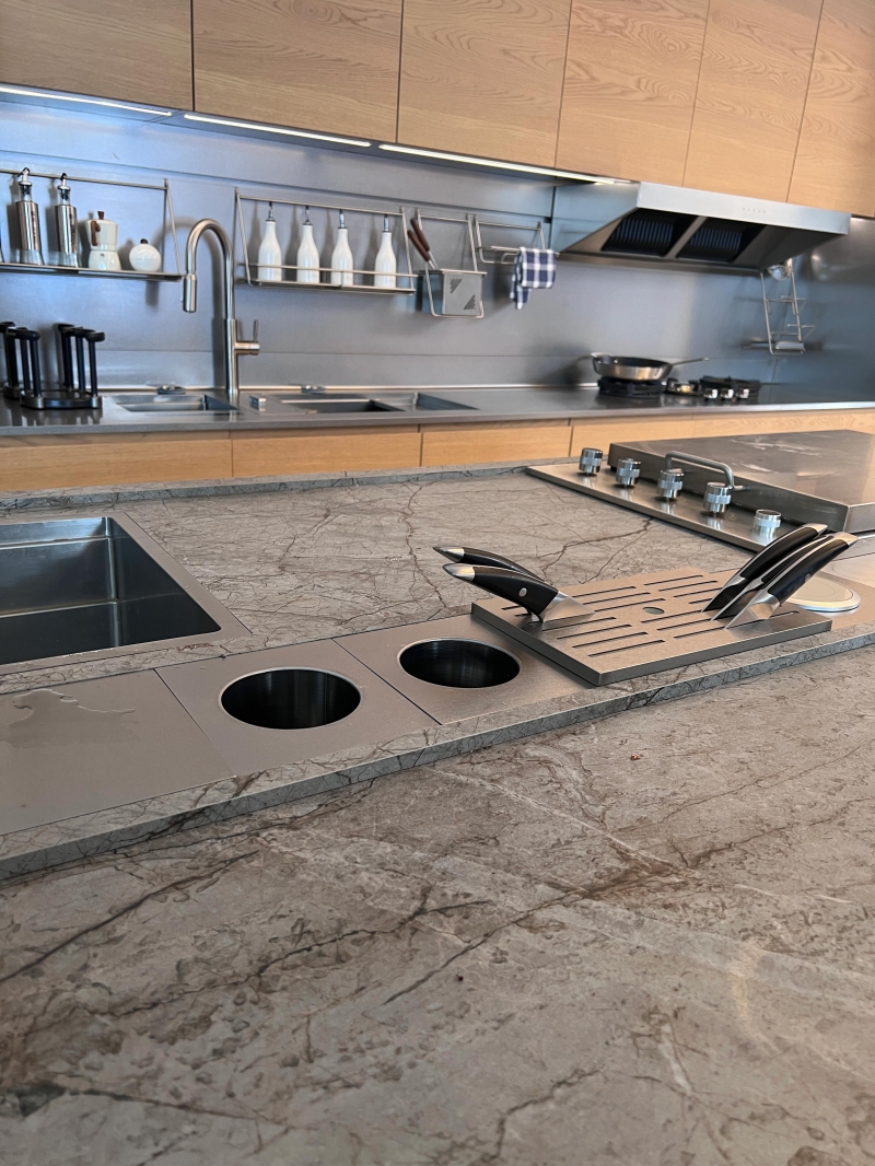 流暢的動線設計,溫潤實木與細膩不銹鋼的材質搭配,