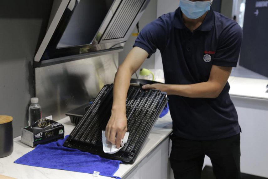 油煙,是困擾中國廚房的頭號問題。李林鴻先生為現(xiàn)場觀眾介紹了庫靈圖的吸油煙機,它具有側(cè)吸式設(shè)計、前置油煙分離、整流增壓艙、免拆洗等特點。能真正實現(xiàn)不碰頭、不滴油、不跑煙、不用洗的夢想,是開放式廚房實現(xiàn)爆炒不跑煙的核心。